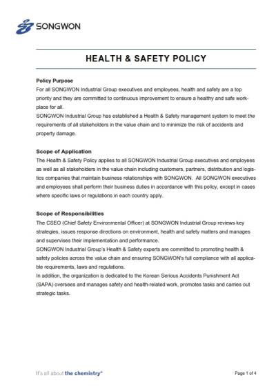SONGWON Health & Safety Policy